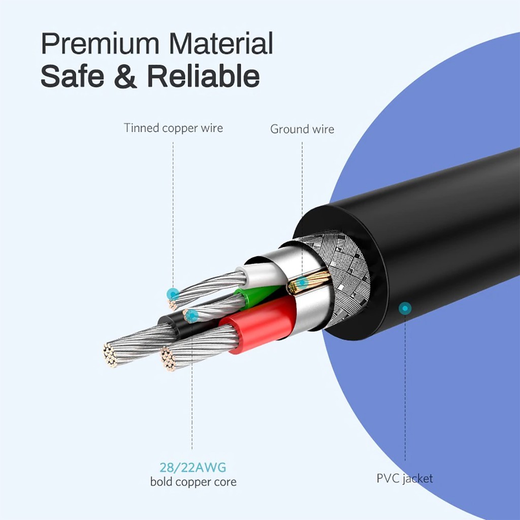 -Vỏ cáp được làm bằng nhựa PVC thân thiện môi trường với độ đàn hồi cao, khả năng cách điện tốt, giúp sợi cáp vừa dễ dàng uốn dẻo hay cuộn tròn mà không lo gãy, lại vô cùng sang trọng, bắt mắt.