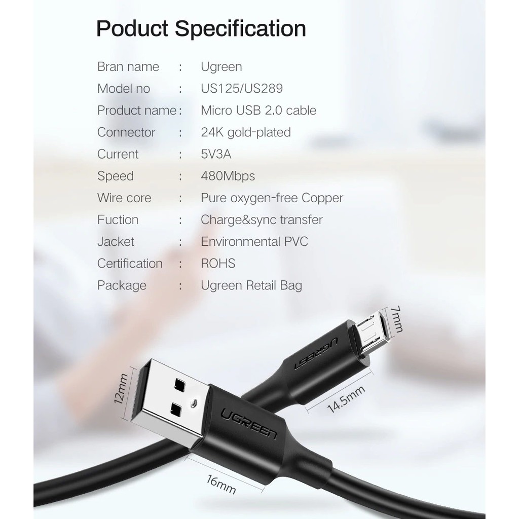 Giới thiệu Cáp Sạc Nhanh 3A*5V Cổng Micro USB Cao Cấp UGREEN US289 - Hàng Chính Hãng