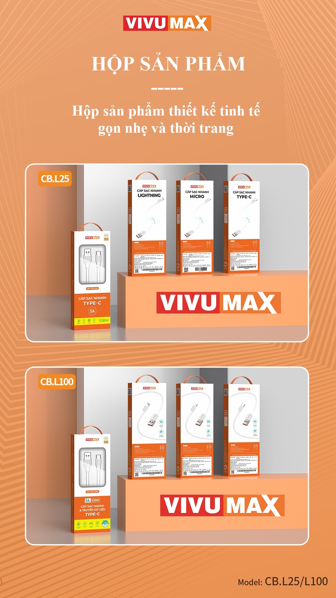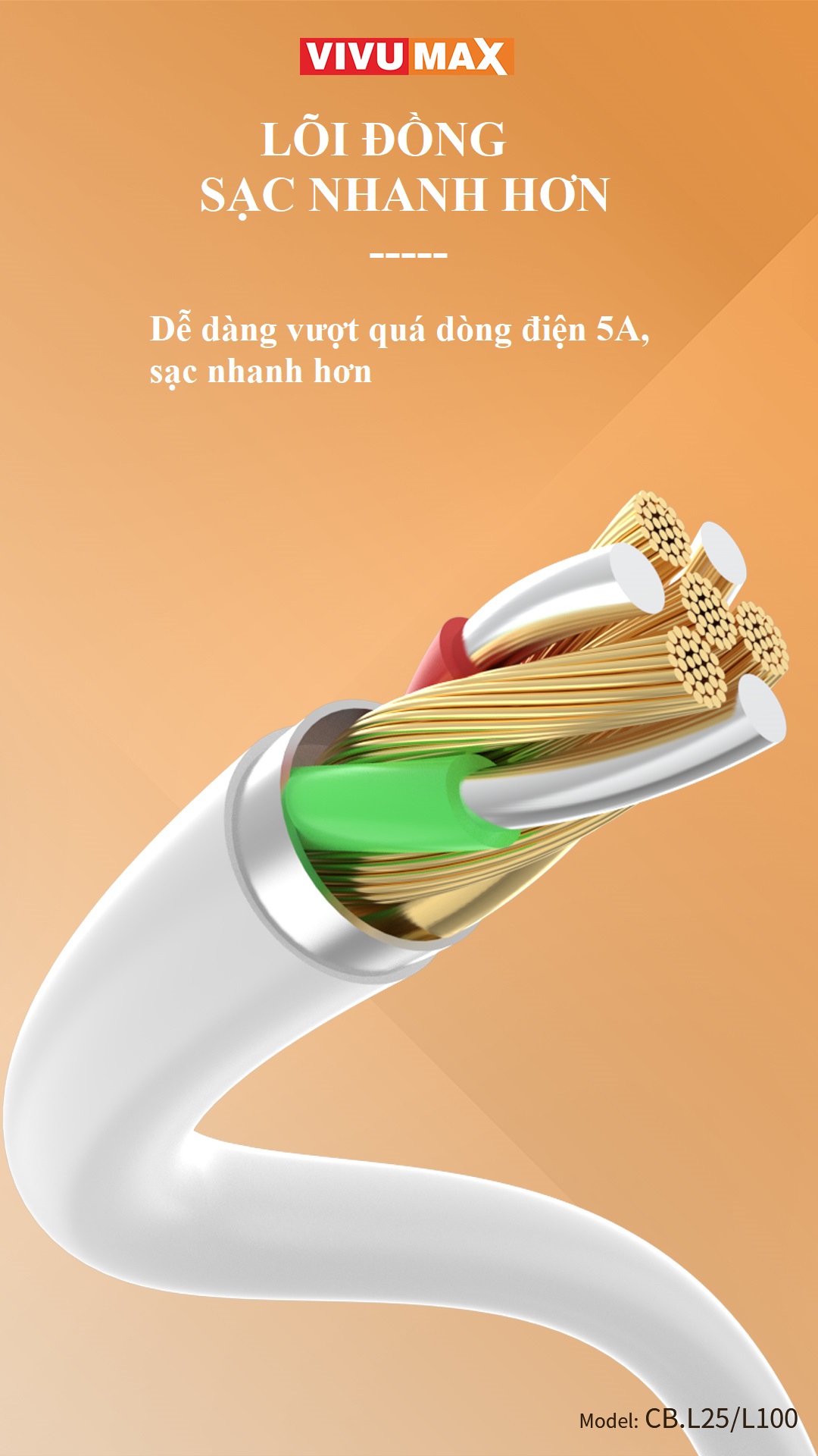 Giới thiệu Cáp sạc nhanh 5A Vivumax L100m đầu Micro dài 1m, 100W - Hàng Chính Hãng, Bảo Hành Chính Hãng