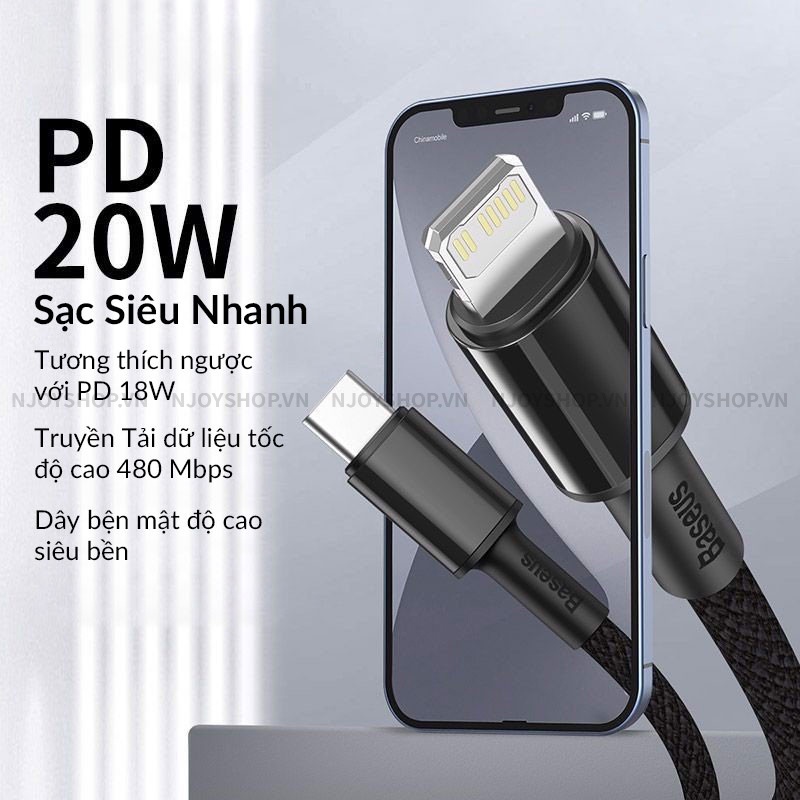 Giới thiệu Cáp Sạc Nhanh Baseus Braided PD 20W Type C to Lightning Dây Dù Cho iPhone 11 Pro Max 12 Pro Max 13 Pro Max Njoyshop
