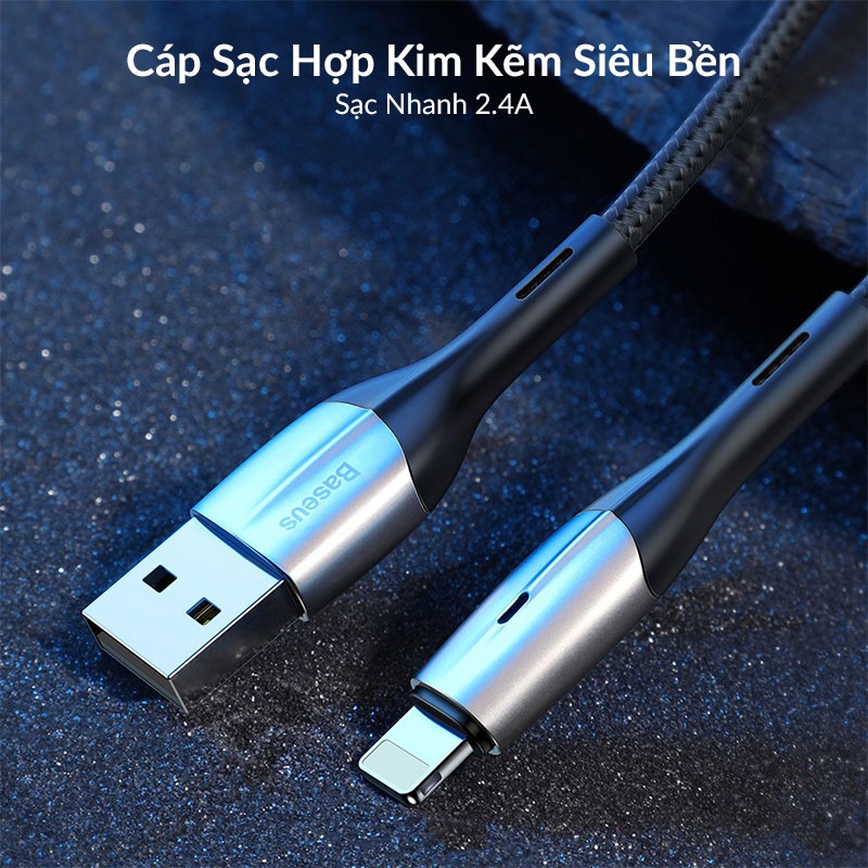 Giới thiệu Cáp Sạc Nhanh Có Đèn Led BASEUS Horizontal 2.4A Dây Bện Nylon Độ Dài 1m/2m Cho iPhone 6 6s 7 Plus 8 Plus Xs Max Xr