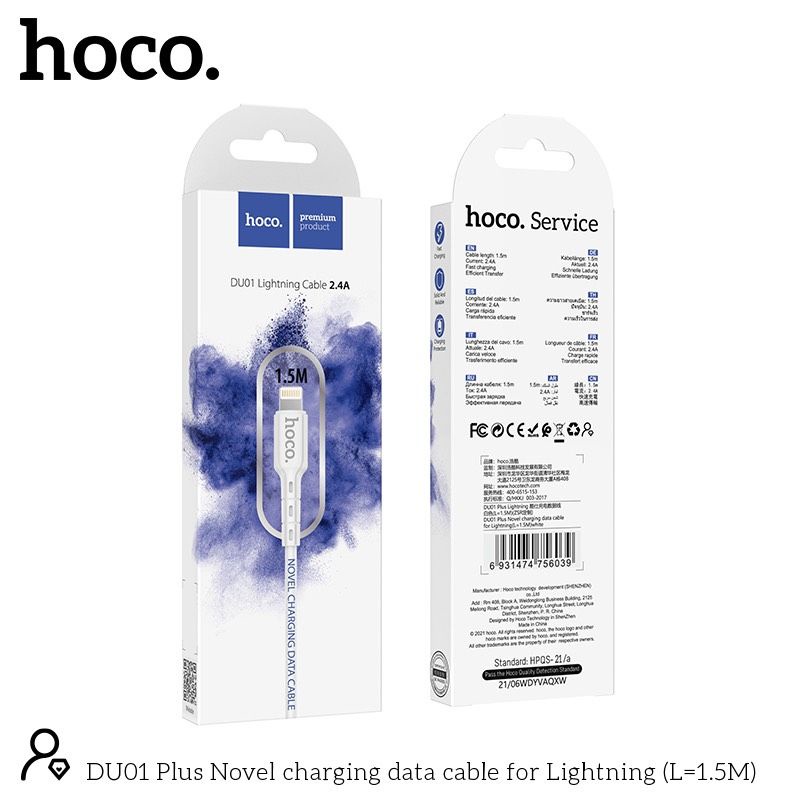 Điện Thoại & Phụ Kiện > Khác || Cáp sạc nhanh Hoco DU01 cổng Lightning dài 1.5m 5V-2.4A - Chính hãngCòn hàng