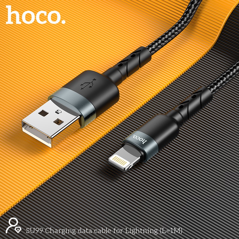 Cáp Hoco SU99 là sản phẩm mới ra lò vào tháng 02/2021 của hãng phụ kiện Hoco. SU99 được coi là phiên bản nâng cấp của cáp Hoco X14. Vẫn là dây dù nhưng dây cáp Hoco SU99 được thiết kế thời trang và chắc chắn hơn, với tông màu đen xám nổi bật. Với phiên bản lần này, cáp Hoco SU99 được gia cố thêm phần đệm cao su để hạn chế tình trạng đứt cáp ngầm. Nhờ đó, thời gian sử dụng sẽ được lâu hơn.Có hỗ trợ sạc nhanh với cáp 1 mét yêu cầu phải kèm củ sạc chuẩn hỗ trợ sạc nhanh, riêng cáp 2 mét không hỗ trợ sạc nhanh