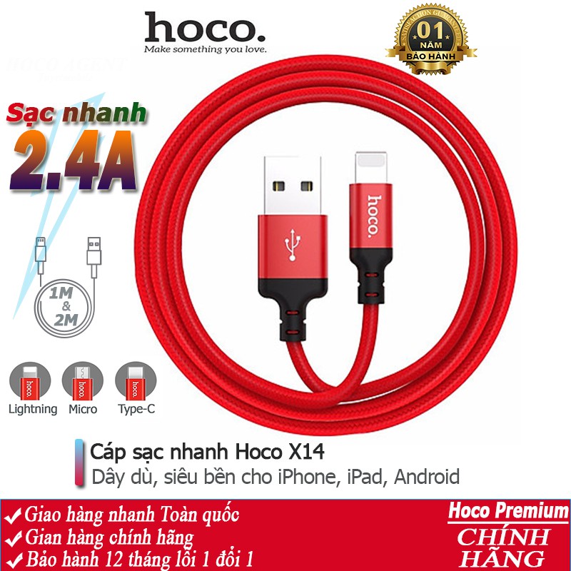 Điện Thoại & Phụ Kiện > Phụ kiện > Cáp, sạc & bộ chuyển đổi > Cáp & Bộ chuyển đổi di động || Cáp sạc nhanh Hoco X14 siêu bền sạc full iPhone, Android, iPad dây truyền tải dữ liệu dài 1m, 2m - Chính hãngCòn hàng