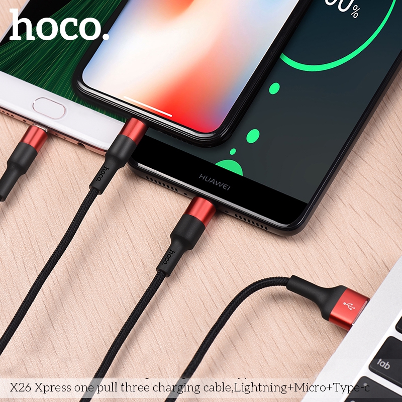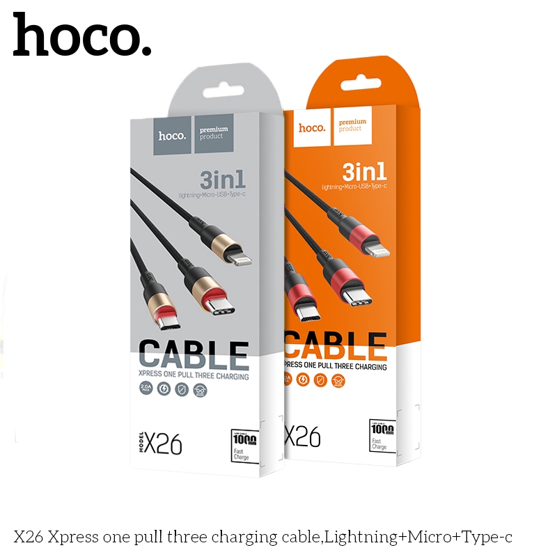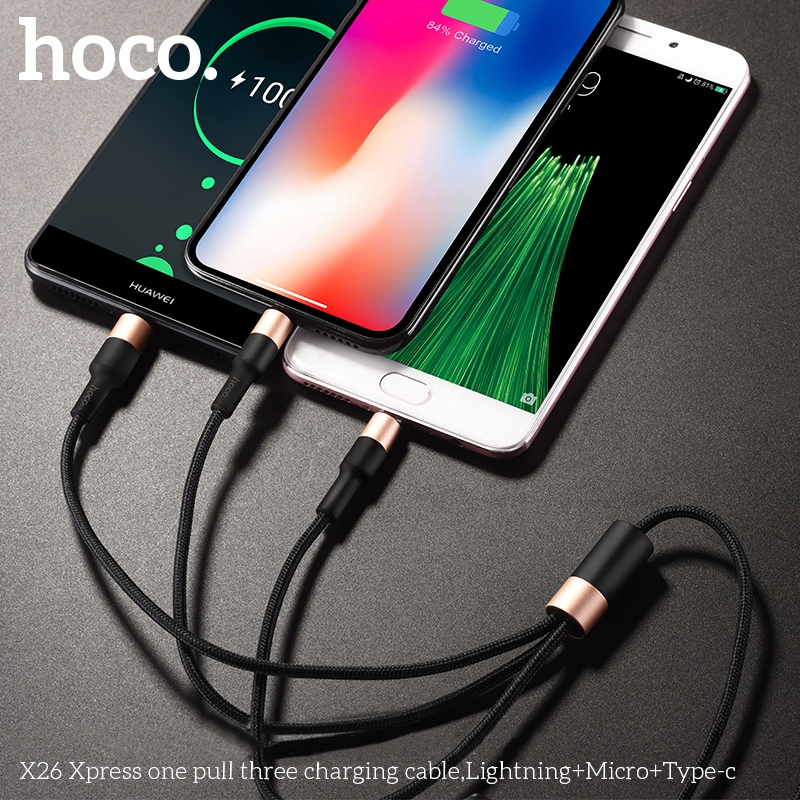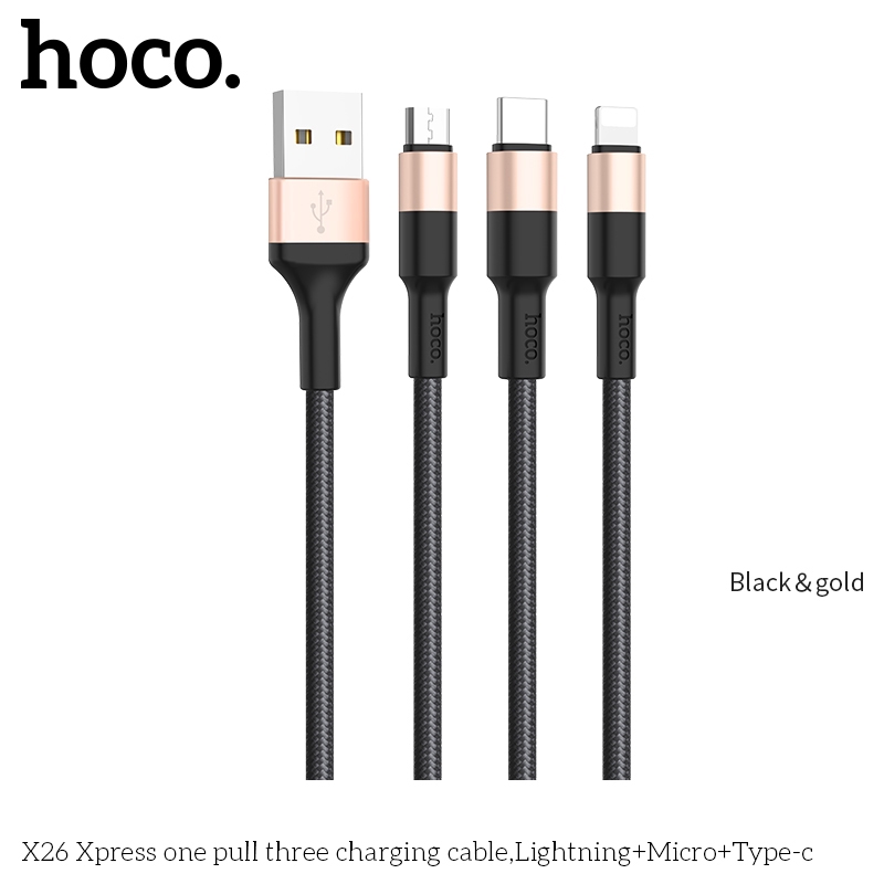 - Model: Cáp Hoco X26 3 đầu đa năng