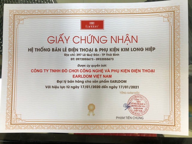 - Là nhà bán lẻ được ỦY QUYỀN chính thức từ Earldom Việt Nam, KLH Cam kết sản phẩm bán ra chính hãng được chấp nhận bảo hành trên toàn quốc.