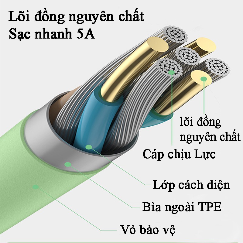 ⭐7. Lõi đồng nguyên chất, an toàn và điện trở thấp