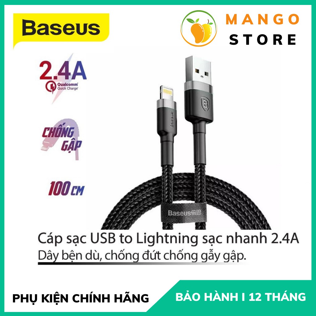 Giới thiệu Cáp sạc nhanh iPhone Sạc Nhanh 2.4A Dây bọc dù chống gẫy gập Hỗ trợ tryền dữ liệu Dài 1M/2M Chính hãng Baseus