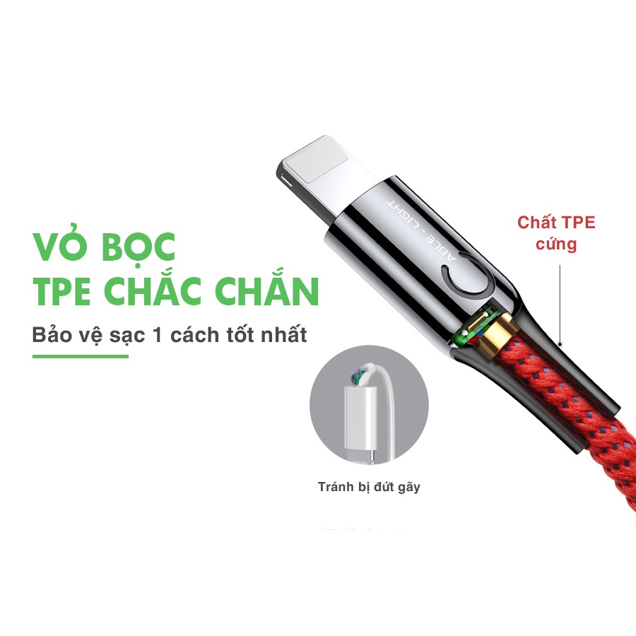 Cáp sạc nhanh iPhone Tự Ngắt Điện Khi Đầy Pin Thông Minh Sạc Nhanh 2.4A Baseus C-shaped Light