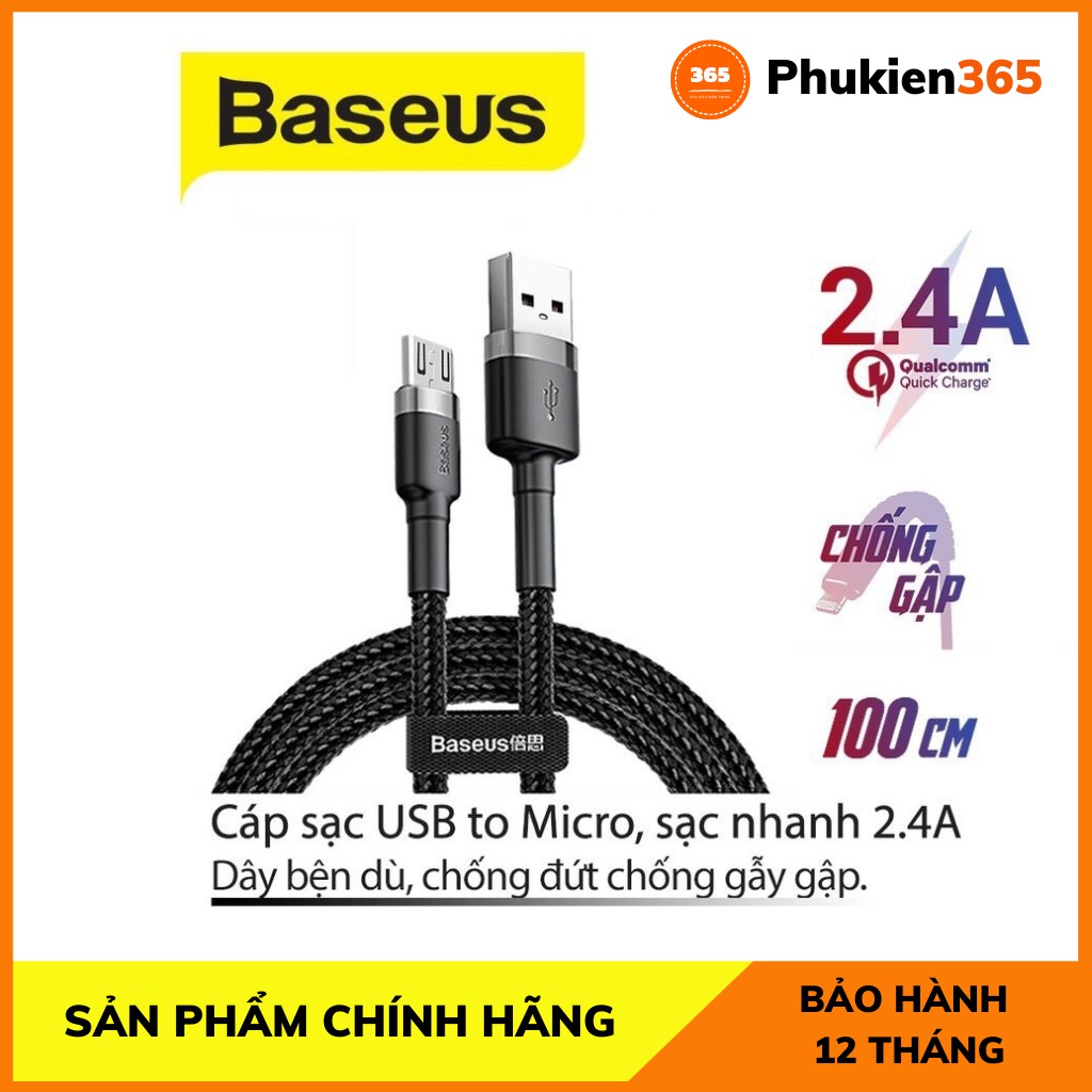 Cáp sạc nhanh Micro 2.4a cho Android Samsung Xiaomi Oppo hỗ trợ truyền dữ liệu 1M/2M dây chống gãy gập chính hãng baseus