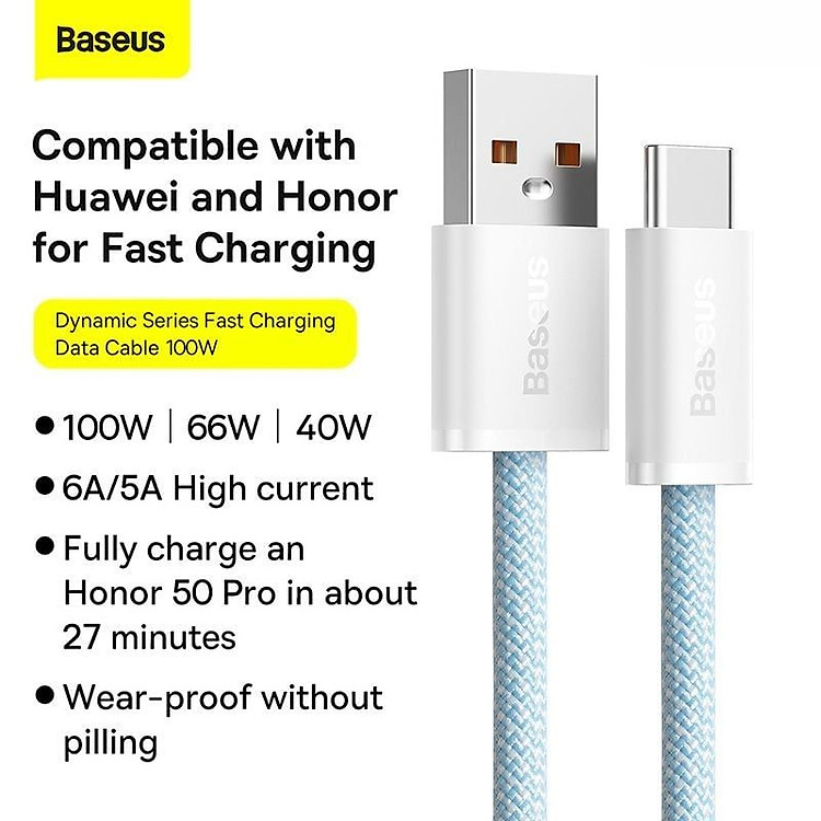 - Baseus Dynamic Series là dòng cáp sạc vải dù siêu bền nổi tiếng của Baseus. Sản phẩm luôn được săn đón bởi sở hữu thiết kế trẻ trung, chất liệu cao cấp, màu sắc trẻ trung hiện đại. Ngoài ra sản phẩm còn hỗ trợ sạc nhanh với công suất lên đến 100W mà vẫn đảm bảo an toàn cho thiết bị của bạn.