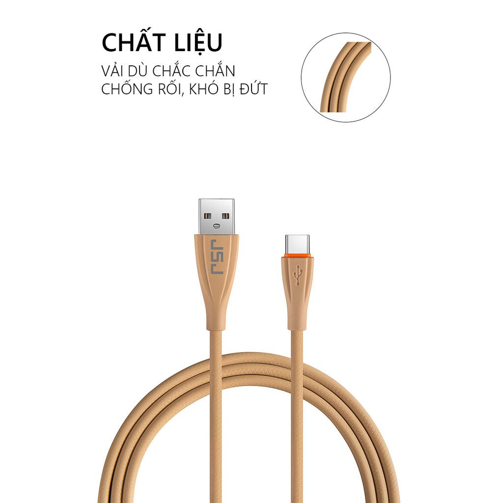 Cáp sạc nhanh Type-C 2.0A JSJ 232C dài 1m sử dụng chất liệu vải dù , ứng dụng công nghệ sac mới nhất, an toàn chắc chắn
