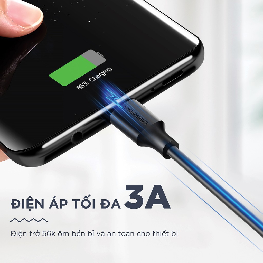 Giới thiệu Cáp sạc nhanh Type-C dòng tối đa 3A, độ dài từ 0.25-2m UGREEN US287 siêu bền - Hàng phân phối chính hãng