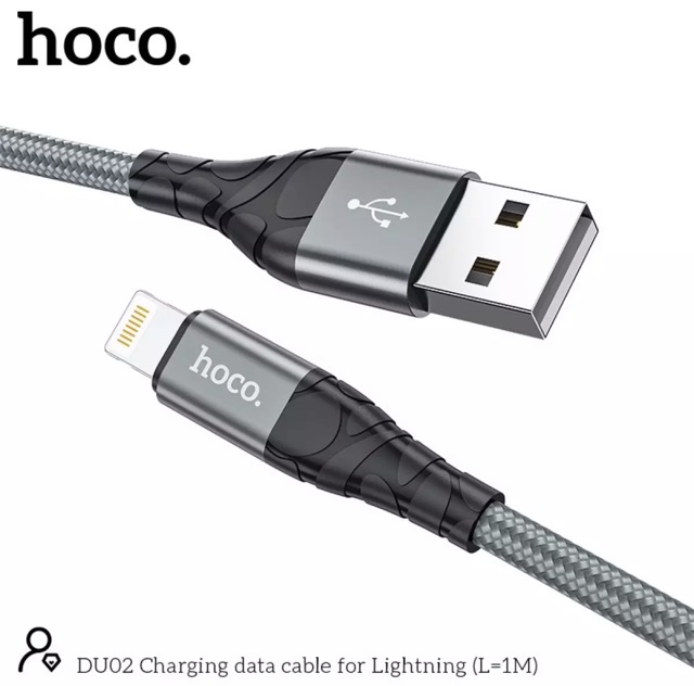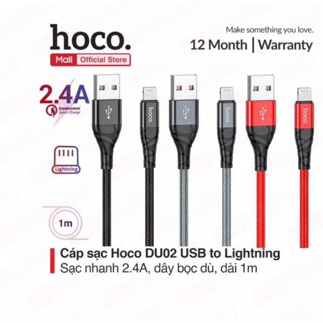 Cáp sạc nhanh và truyền dữ liệu lightning Hoco DU02 cho iPhone 12 pro max, sạc nhanh cáp bọc dù chống đứt, chống gãy gập