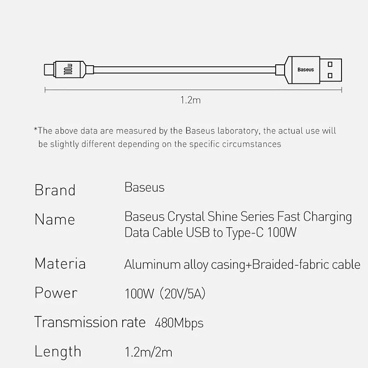 Tính Năng Cơ Bản Cáp Sạc Siêu Nhanh Baseus Crystal Shine Series Fast Charging USB to Type-C 100W (Supercharge 5A & Data Cable)