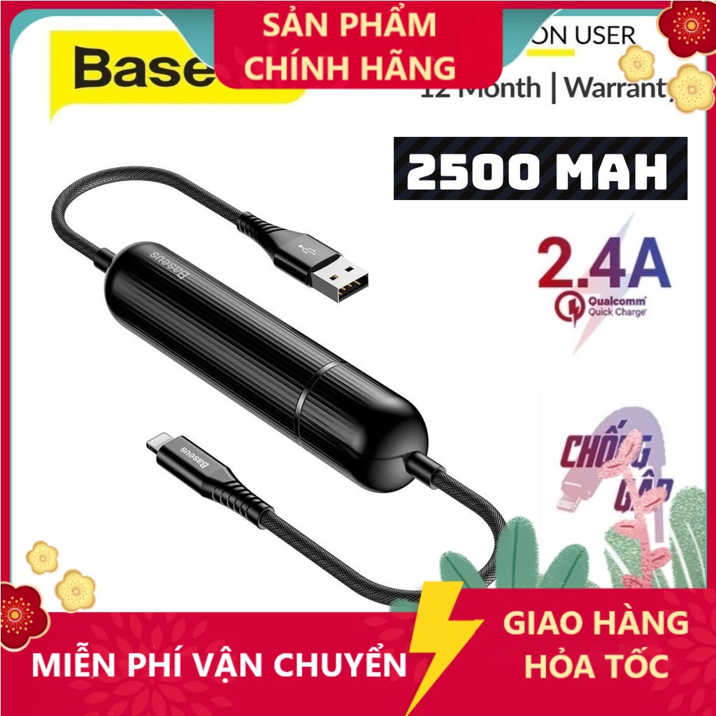 Cáp sạc tích hợp pin dự phòng Baseus 2in1 sạc dự phòng dung lượng 2500 mAh + USB / Lightning cáp 2.4A đen -ACSTORE