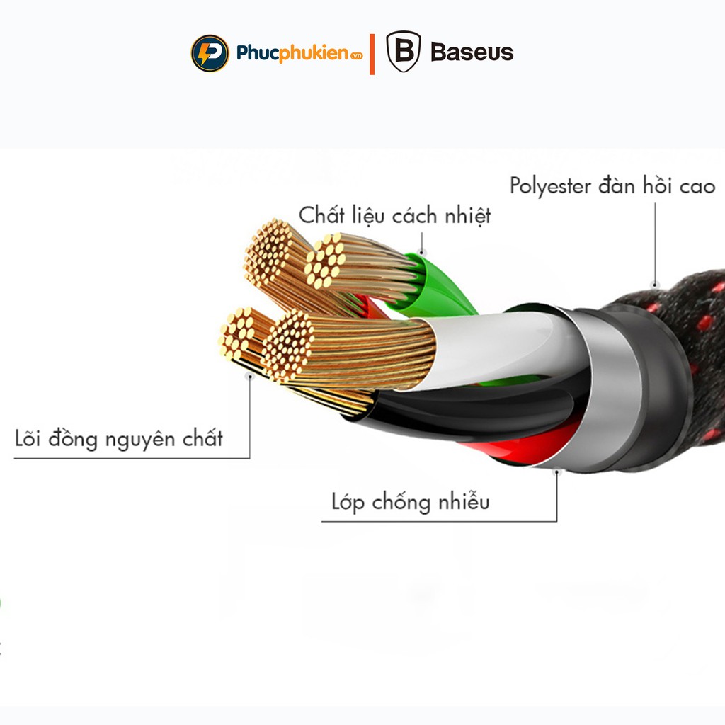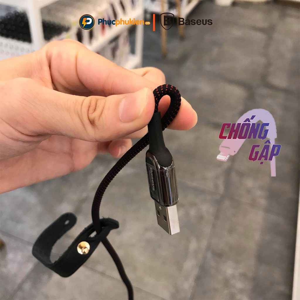 Cáp sạc tự ngắt Baseus C shaped hỗ trợ sạc nhanh 12w thiết kế bọc vải chống gẫy gập hiệu quả - Phúc Phụ Kiện