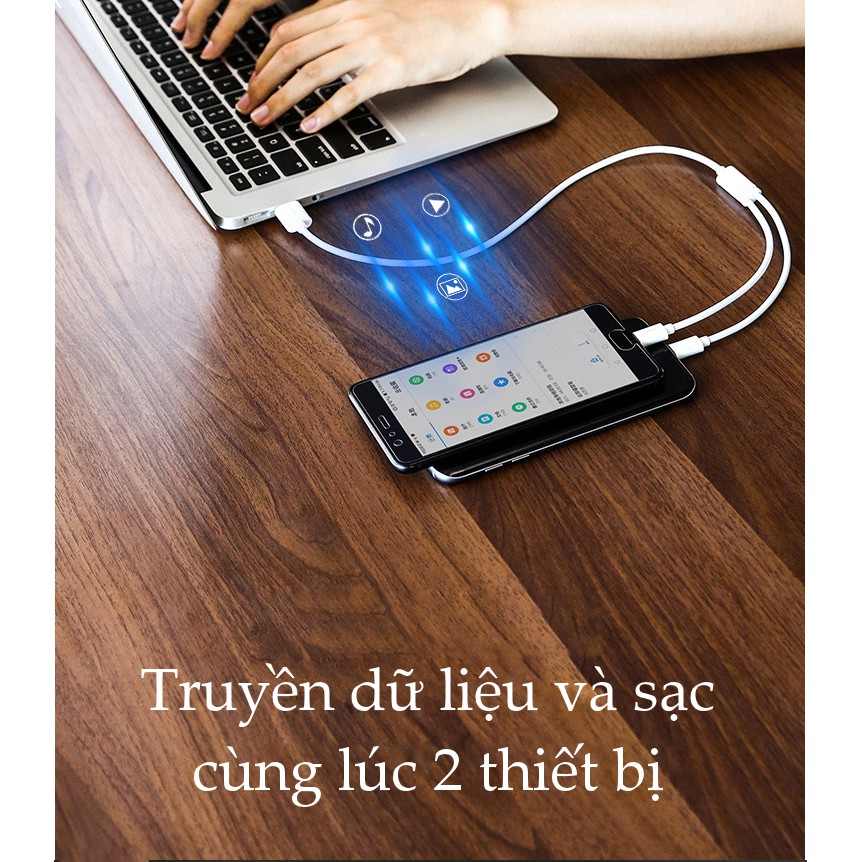 * Cáp sạc và truyền dữ liệu đồng thời 2 thiết bị hỗ trợ cổng Micro USB