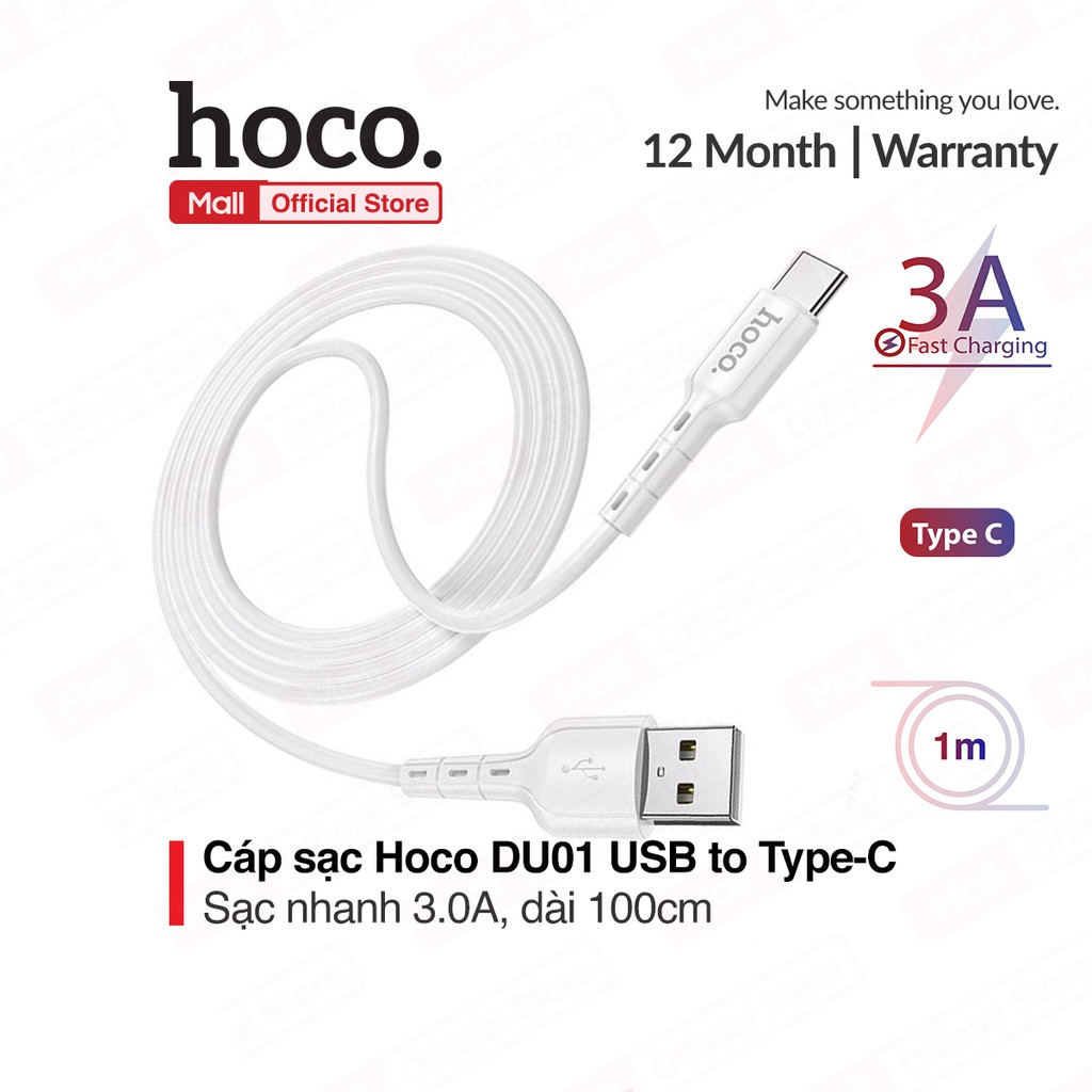 Điện Thoại & Phụ Kiện > Phụ kiện > Cáp, sạc & bộ chuyển đổi > Cáp & Bộ chuyển đổi di động || Cáp sạc và truyền dữ liệu Hoco DU01 USB to Micro/Lightning/Type-C sạc nhanh 2.4A/3A dài 100cmCòn hàng