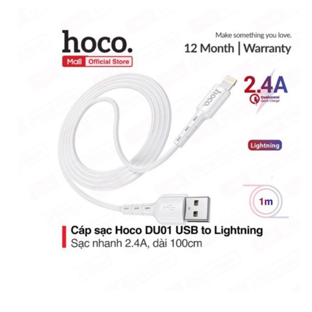 Giới thiệu Cáp sạc và truyền dữ liệu Hoco DU01 USB to Micro/Lightning/Type-C sạc nhanh 2.4A/3A dài 100cm