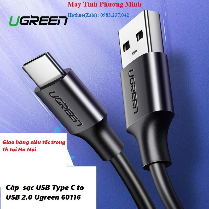 Cáp sạc và truyền dữ liệu USB Type C sang USB 2.0 cao cấp Ugreen 60116 dài 1m - Hàng chính hãng bảo hành 18 thángGiới Thiệu Sản Phẩm: