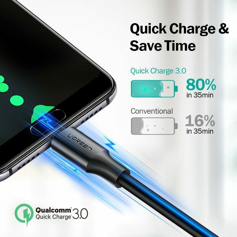 Cáp UGREEN 60116 Với thiết kế truyền thống, đơn giản, gọn nhẹ nhưng sủ dụng chất liệu nhựa PVC cao cấp, độ hoàn thiện cao. Lõi đồng nguyên chất bọc bạc chống nhiễu. Kèm với công nghệ sạc nhanh Quick Charge 3.0 nguồn ra 5V3A (max) giúp sạc thiết bị của bạn được sạc đầy một cách nhanh chóng