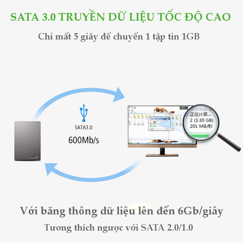 Sợi cáp tiêu chuẩn 26AWG, tương thích chuẩn SATA 2.0 và SATA 1.0