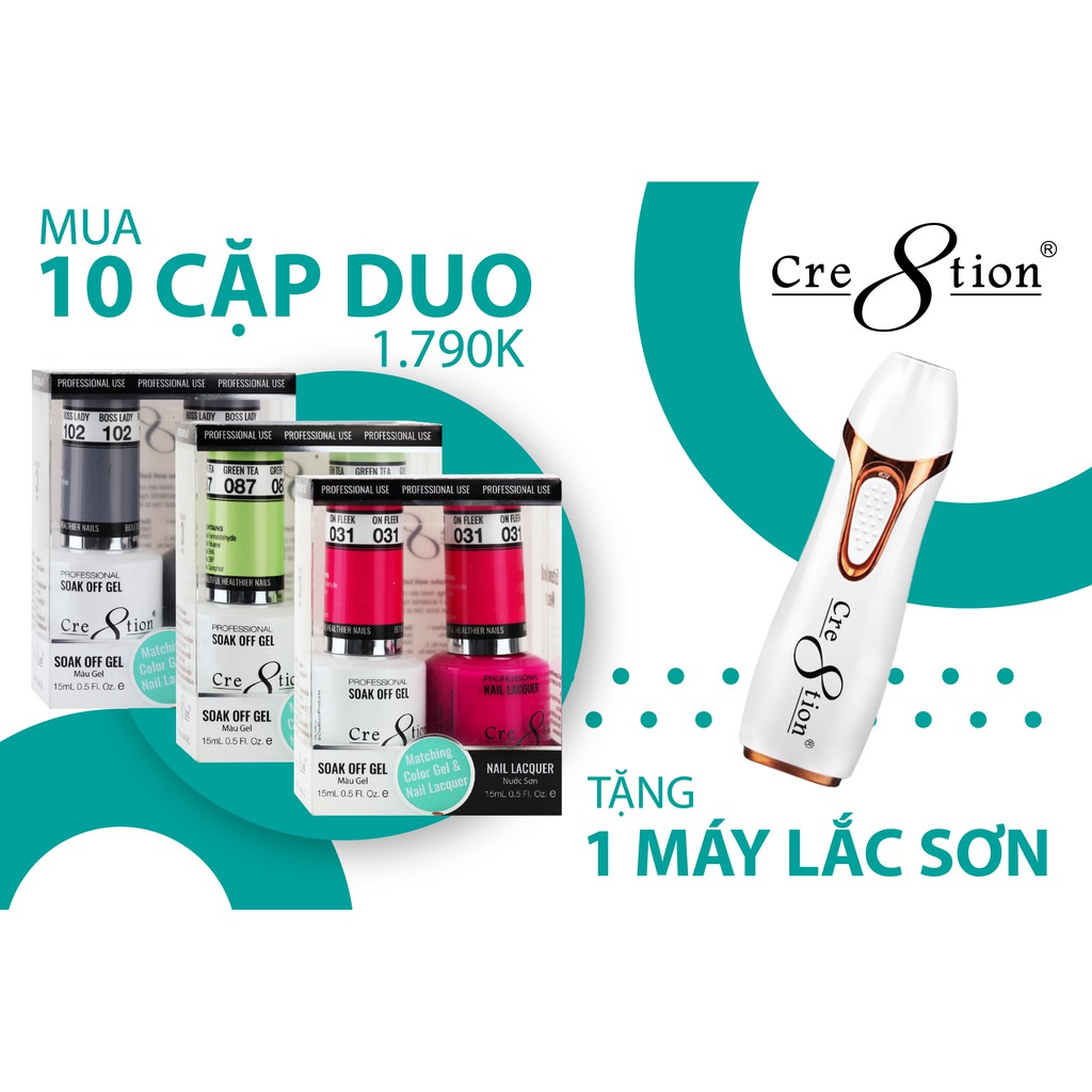 𝟏𝟎 CẶP SƠN DUO GIÁ CHỈ 𝟏.𝟕𝟗𝟎𝐊 TẶNG NGAY 1 MÁY LẮC SƠN CẦM TAY CRE8TION
