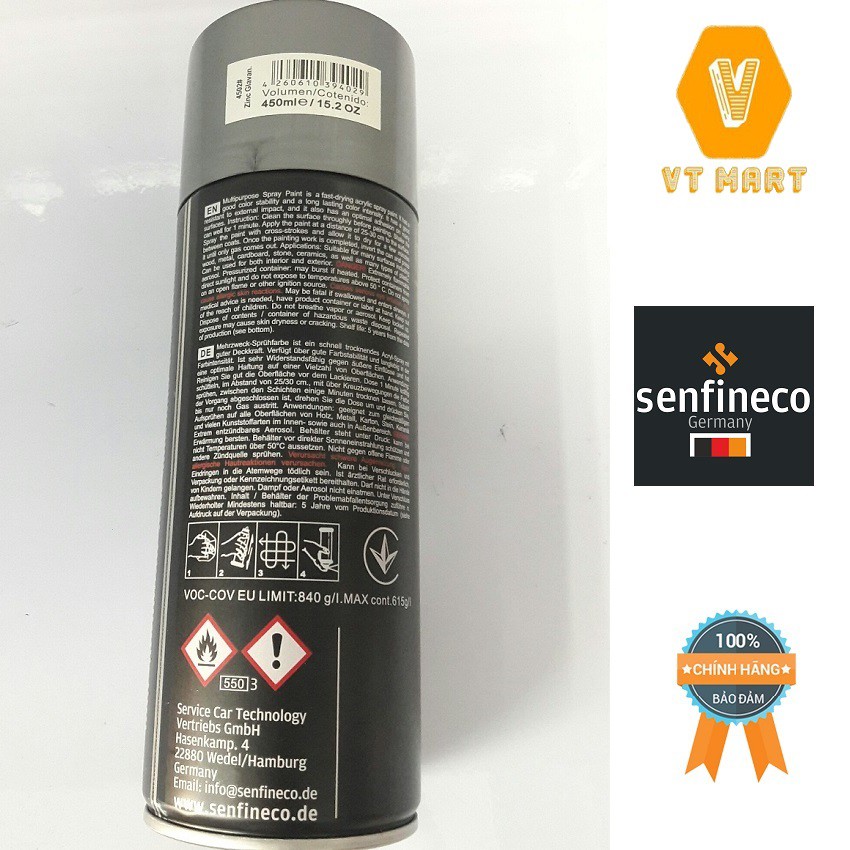 [Cao Cấp] Sơn Mạ Kẽm SENFINECO 4502 (400ml) Paint Acrylic Zinc Galvaniasazion màu xám Hàng Đức Chính Hãng