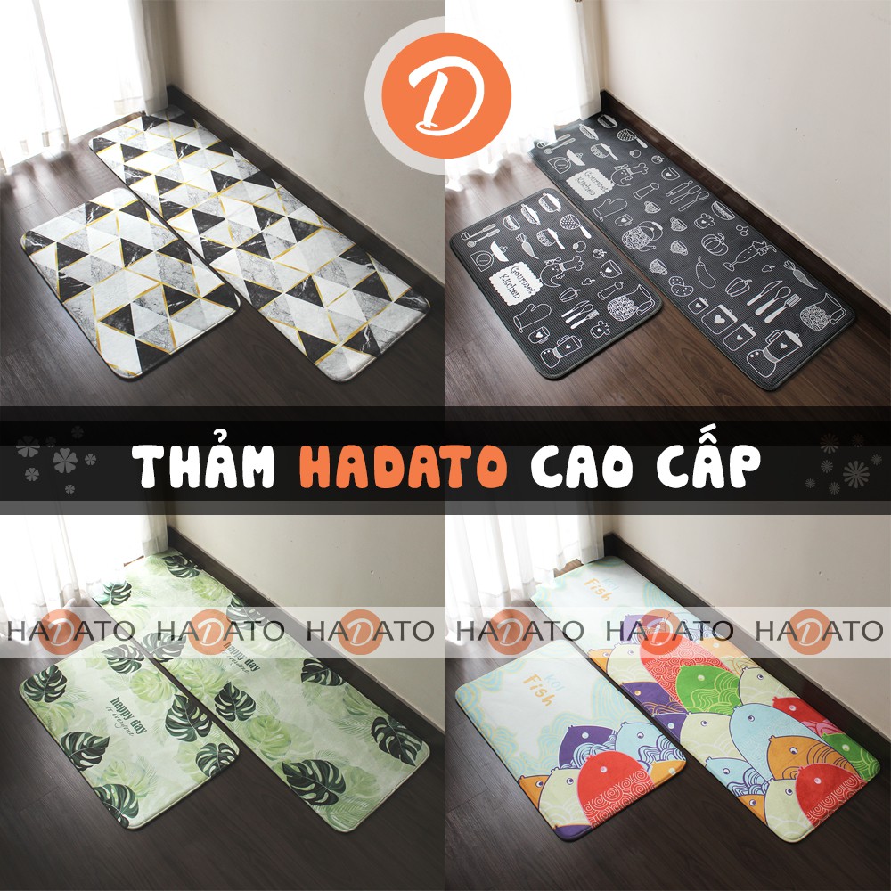 THẢM CHỈ 1 TẤM THEO PHÂN LOẠI KHÁCH CHỌN. KHI MUỐN MUA LÀM BỘ THẢM BẾP THÌ QUÝ KHÁCH CHỌN 2 SẢN PHẨM. VÍ DỤ: - size 40*60 cm + size 40*120 cm💎THẢM HADATO: là thảm có xuất xứ Việt Nam, do công ty Hadato phối hợp Carmi ( công ty chuyên sản xuất thảm xuất qua Hàn Quốc ) sản xuất. Thảm cao cấp hơn so với thảm TQ: