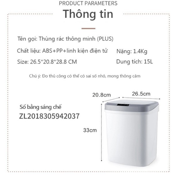 Thùng rác thông minh thế hệ mới sẽ mang đến cho bạn sự tiện lợi bất ngờ mà những thùng rác truyền thống không thể làm được.THÔNG TIN SẢN PHẨM: