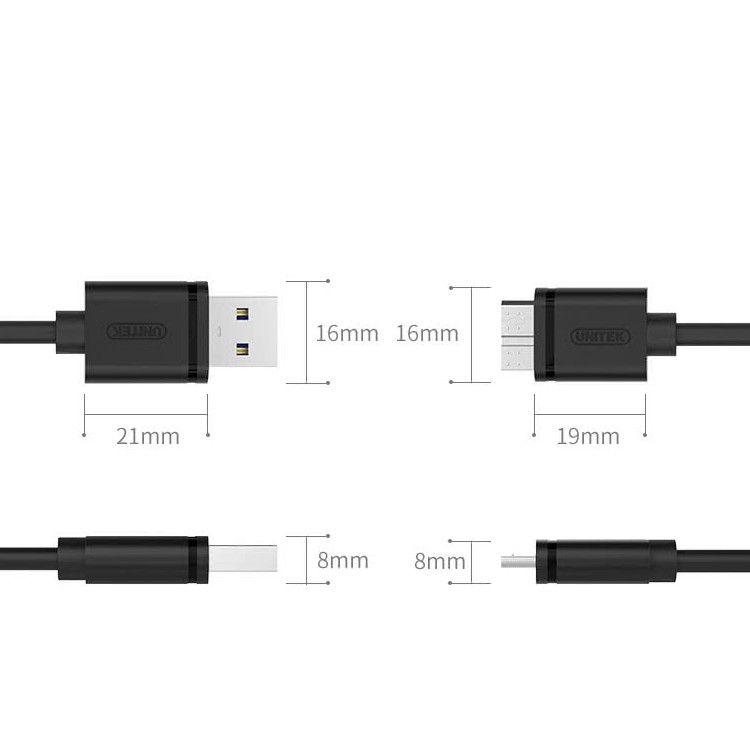 Cáp tín hiệu USB sang microB Unitek Y-C461GBK dài 1m - dùng cho ổ cứng di động hoặc thiết bị có cổng micro B (Đen)
