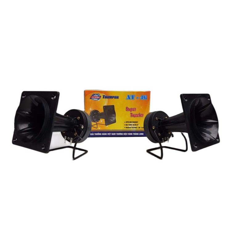 Cặp siêu Treble kèn 250 họng 12 , kèm tụlà sản phẩm chủ lực của hãng THUMPER, với thiết kế đặc biệt về kiểu dáng cũng như kết cấu: Loa được kết hợp bởi một loa treble kèn 250 nhằm bổ trợ tiếng trung và tiếng trép cho hệ thống âm thanh Nhất là thời kỳ hiện nay, nhạc Bolero đang nổi lên như vũ bão và hầu hết các dàn loa đều thiếu tiếng trép, lên nghe nhạc Bolero rất ngang và khô. Chính vì lý do đấy mà loa AT-46 là sự lựa chọn hàng đầu của các tín đồ âm nhạc
