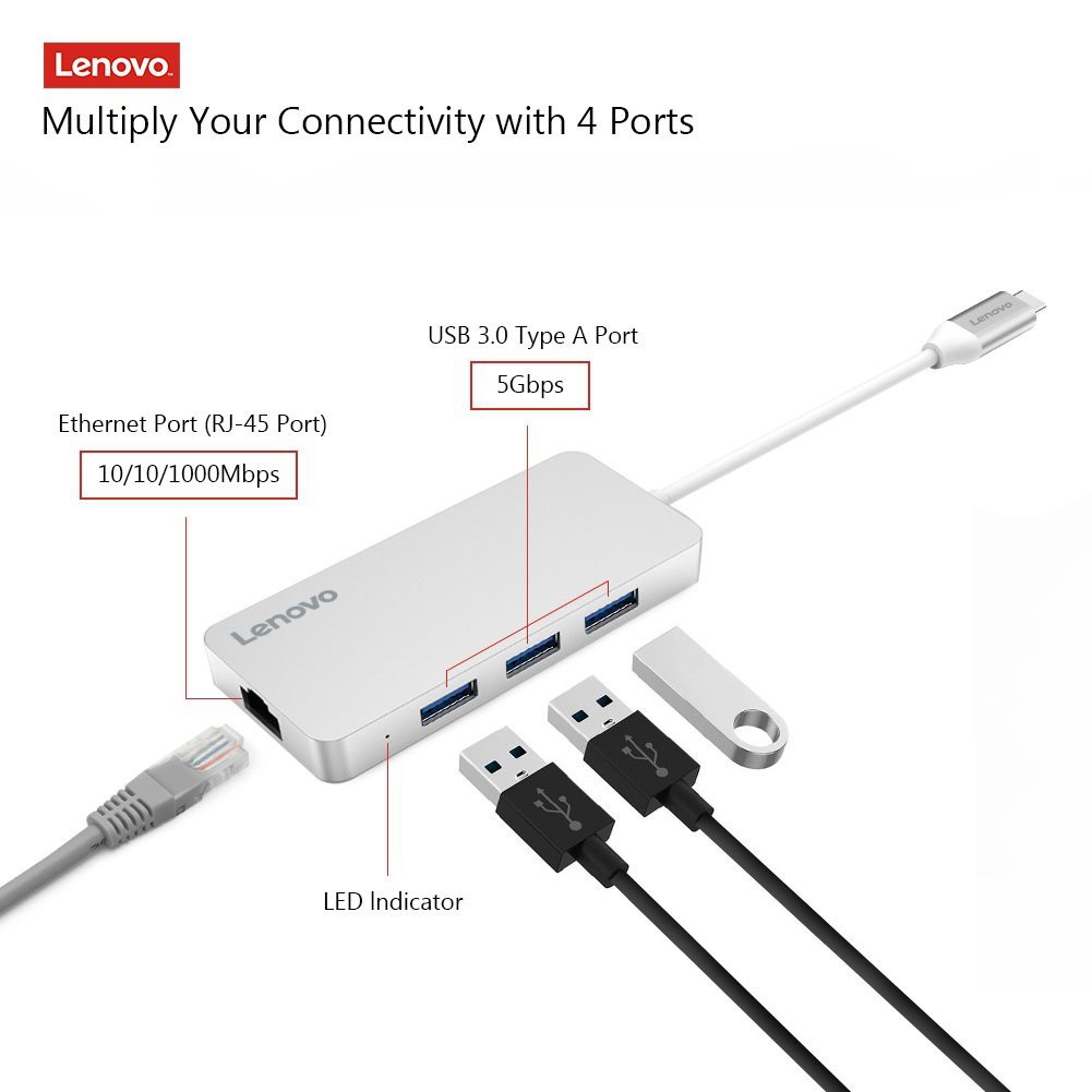 MULTIPORT HUB TYPE-C -> 3 USB 3.0 + LAN LENOVO (C506SL)Cổng vào : Type-C (5Gbps)