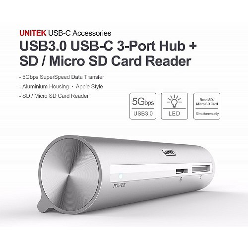 CÁP TYPE C SANG 3 CỔNG USB 3.0 + ĐỌC THẺ NHỚ MICRO SD TF THẺ NHỚ SD UNITEK Y 3094IALLSHOPS - ĐẠI LÝ CHÍNH THỨC UNITEK TẠI VN
