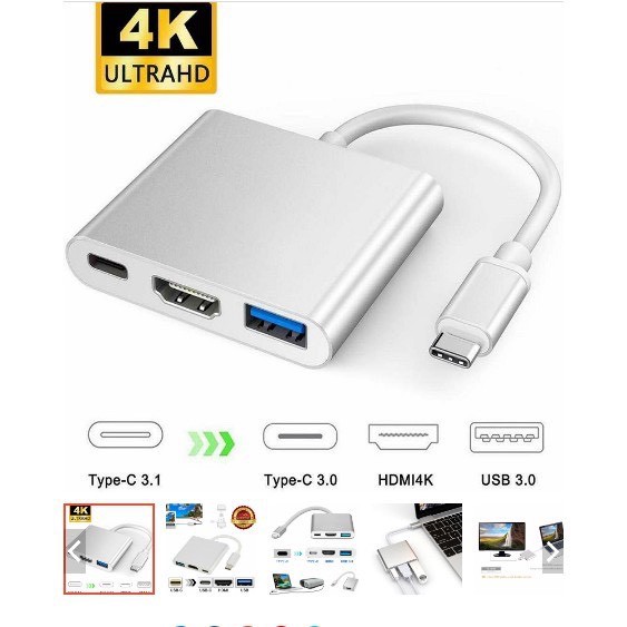 Máy tính & Laptop > Phụ Kiện Máy Tính > Bộ chia cổng USB & Đọc thẻ nhớ || Cáp TypeC 3.1 chuyển đổi 3 trong 1 ra 3 cổng USB 3.0 - HDMI 4k và Type C 3.0 thích hợp dùng cho Iphone và samsungCòn hàng