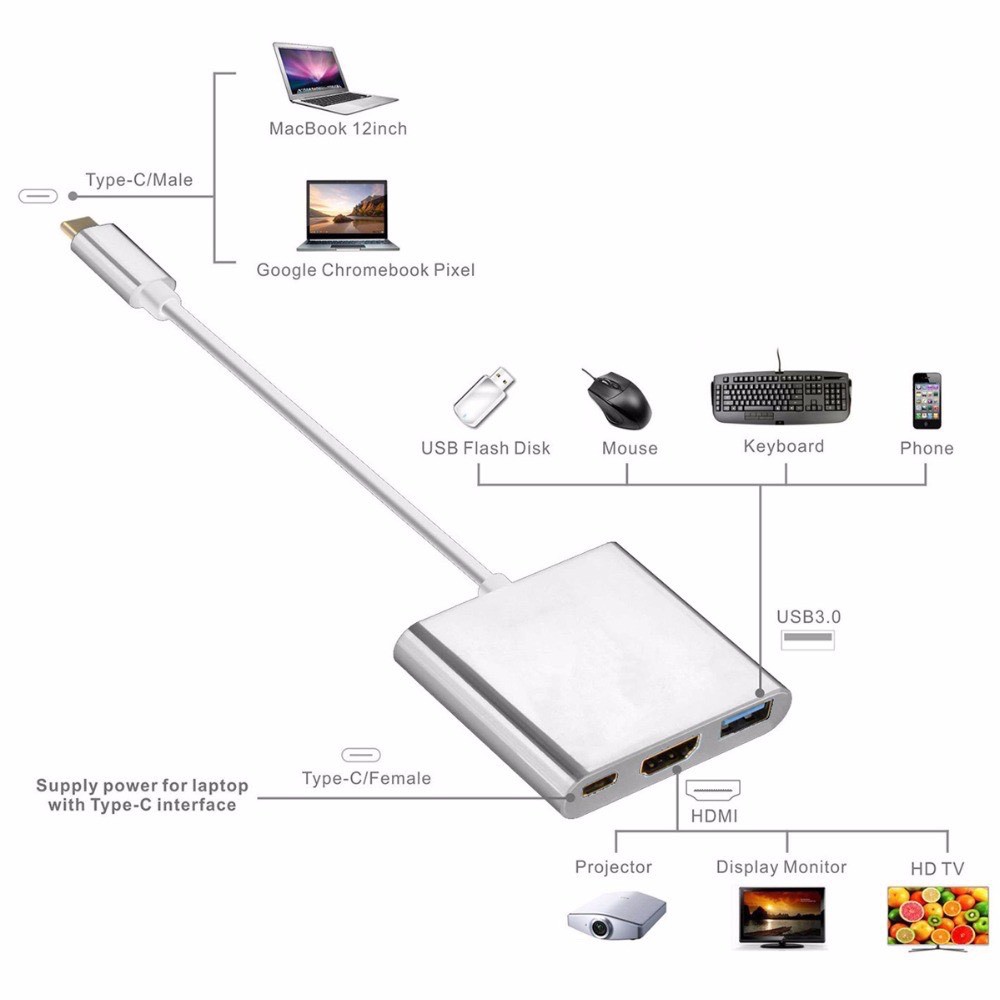Giới thiệu Cáp TypeC 3.1 chuyển đổi 3 trong 1 ra 3 cổng USB 3.0 - HDMI 4k và Type C 3.0 thích hợp dùng cho Iphone và samsung