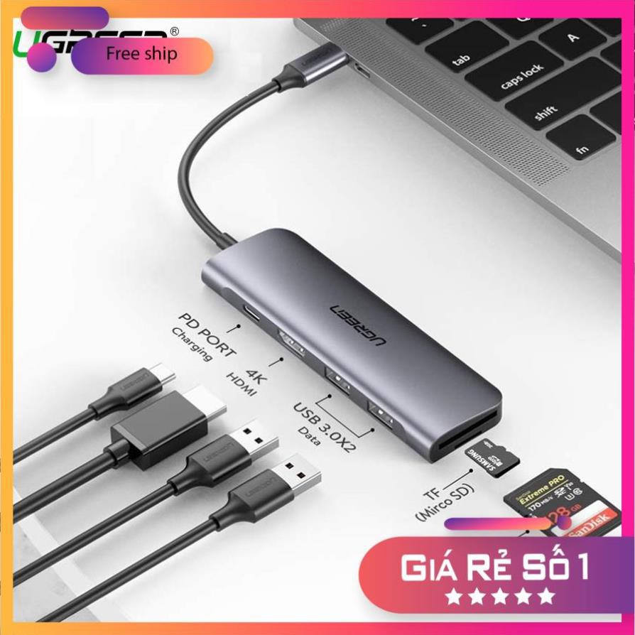 Cáp Ugreen Usb-C 6 in 1 Sang HDMI 4K,2 USB 3.0 Ports,SD/TF Card Reader,100W PD 70411 chính hãng bh 18tháng