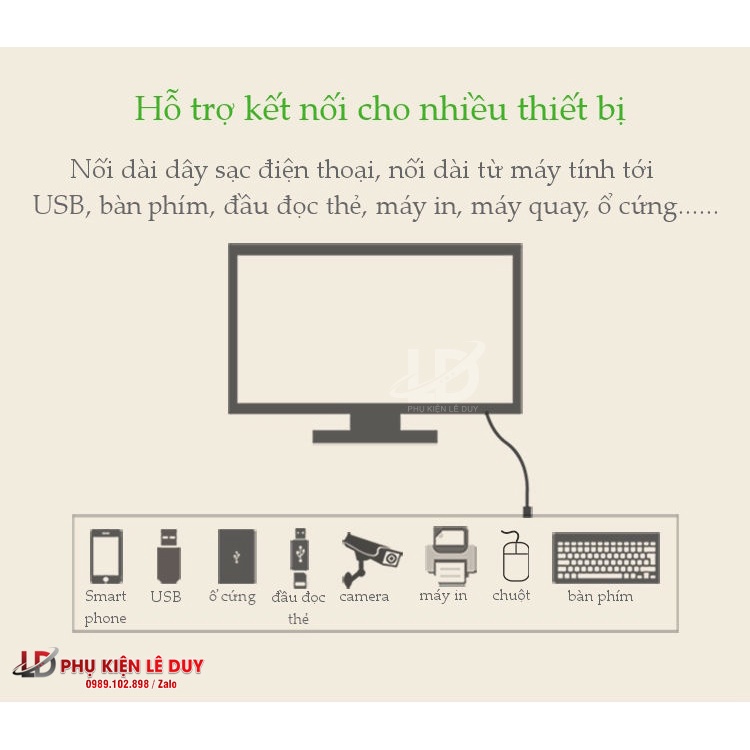 - Tính năng: Mở rộng chiều dài cáp USB 2.0