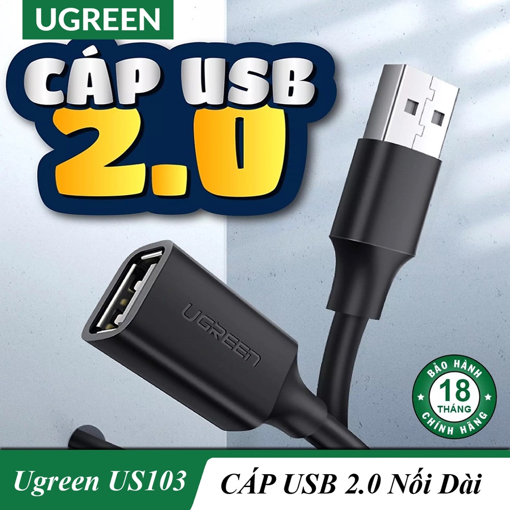 Máy tính & Laptop > Thiết Bị Lưu Trữ > USB & OTG || Cáp USB 2.0 nối dài chính hãng Ugreen US103 cao cấpCòn hàng