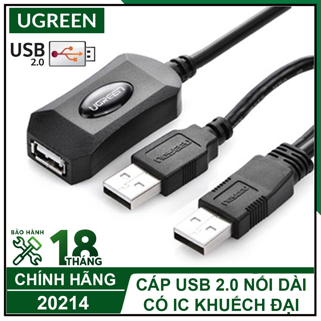 Cáp Usb 2.0 Nối Dài Có Ic Khuếch Đại Cao Cấp, UGREEN 20214 Chính Hãng