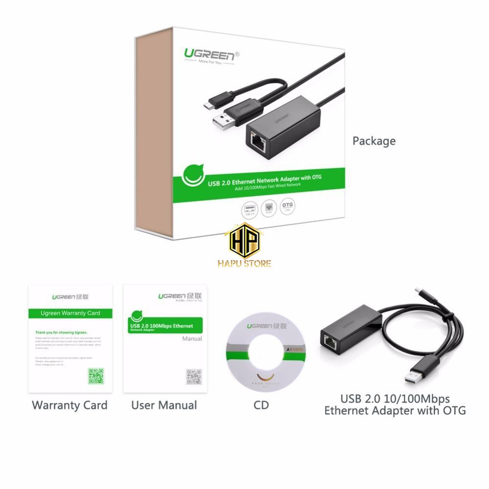 Cáp USB 2.0 sang LAN Ugreen 30219 hỗ trợ OTG tốc độ 10/100 Mbps chính hãng - Hapustore