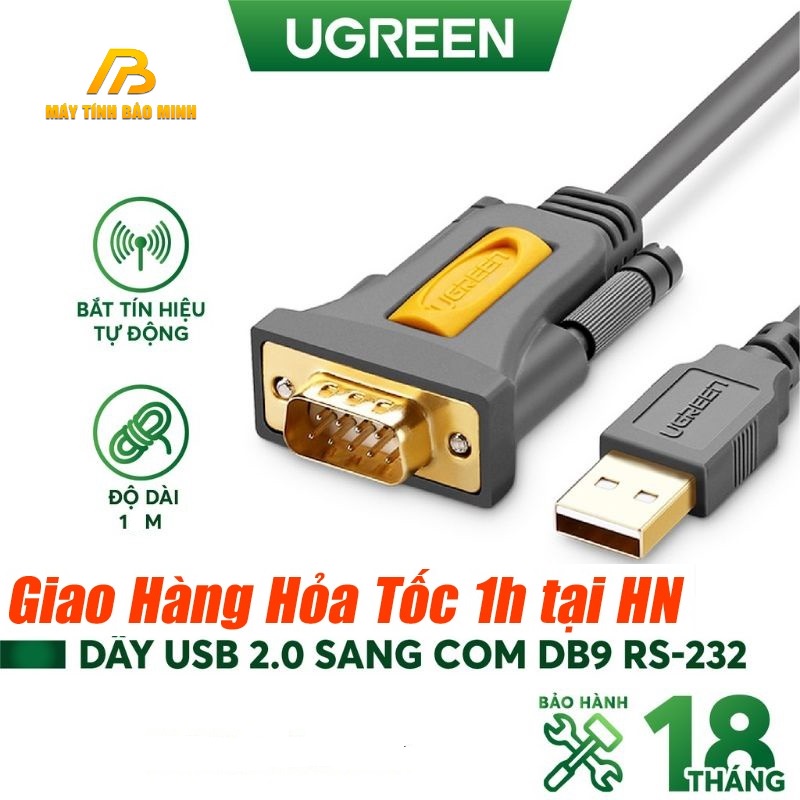 Cáp USB 2.0 To Com RS232-DB9 UGREEN 20210 Dài 1M - Hàng Chính Hãng