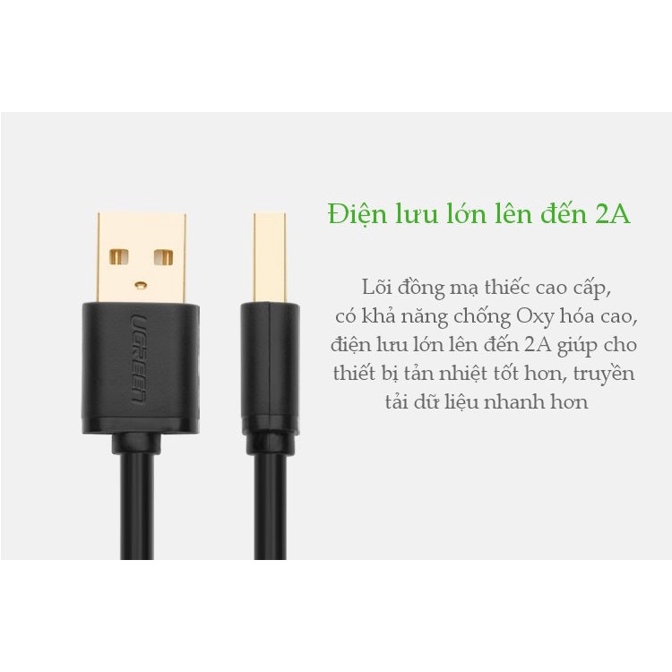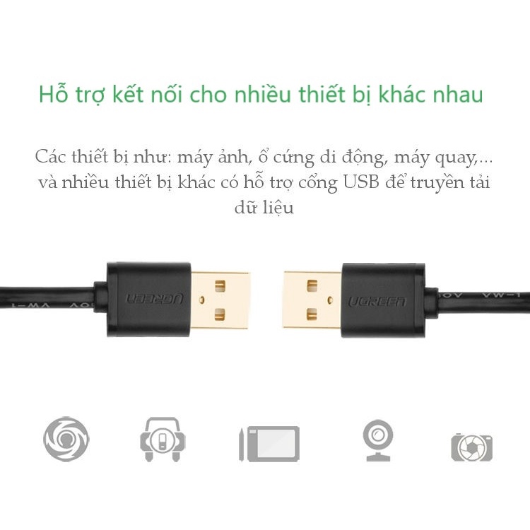 Cáp USB 2.0 Ugreen 10308 (0.5m) dùng để kết nối từ máy tính đến các thiết bị sử dụng cổng USB như máy in, loa, máy scan, bàn phím.