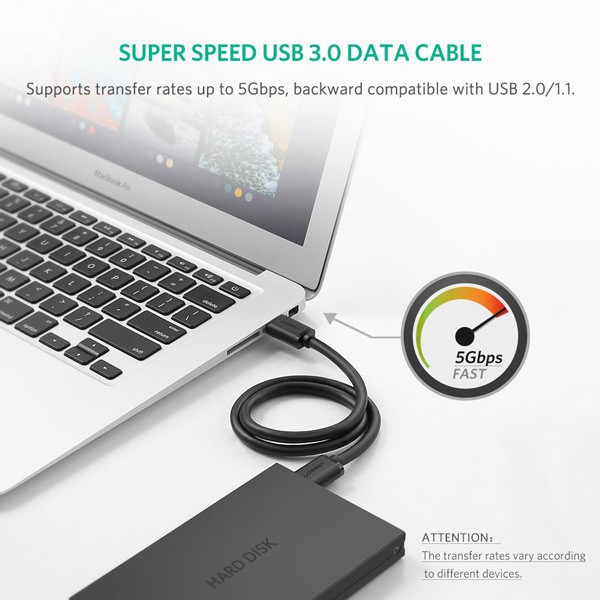 Cable USB 3.0 Ugreen 10369 dùng để kết nối máy tính với ổ cứng, quạt tản nhiệt, bộ chia Hub USB hoặc cáp nối dài USB 3.0 và nhiều thiết bị khác, thuận tiện và nhanh chóng với tốc độ truyền tải dữ liêu lên đến 5Gbps.