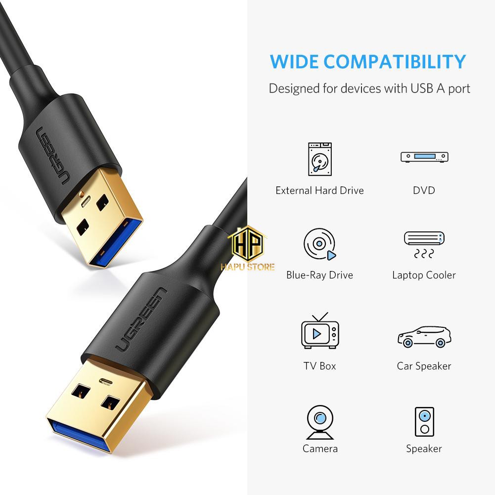 Giới thiệu Cáp USB 2 đầu đực Ugreen US128 chuẩn USB 3.0 tốc độ cao chính hãng - Hapustore