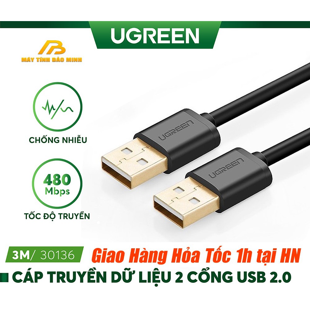 Máy tính & Laptop > Thiết Bị Lưu Trữ > USB & OTG || Cáp USB 2 đầu dương Ugreen 30136 dài 3m chuẩn USB 2.0 - Hàng Chính HãngCòn hàng
