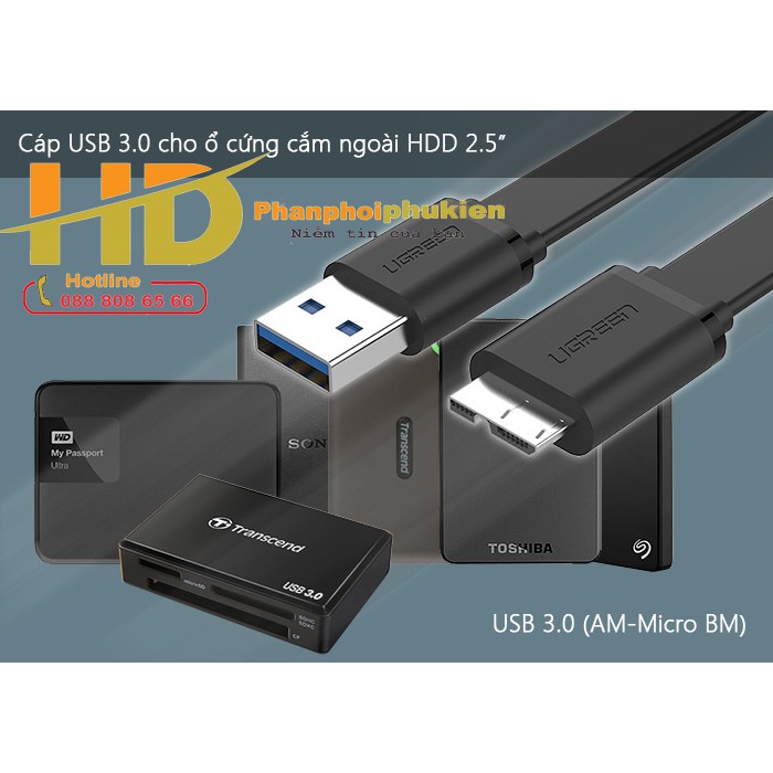 Máy tính & Laptop > Thiết Bị Lưu Trữ > USB & OTG || Cáp USB 3.0 cho ổ cứng di động HDD 2,5 1m Ugreen 10809Còn hàng