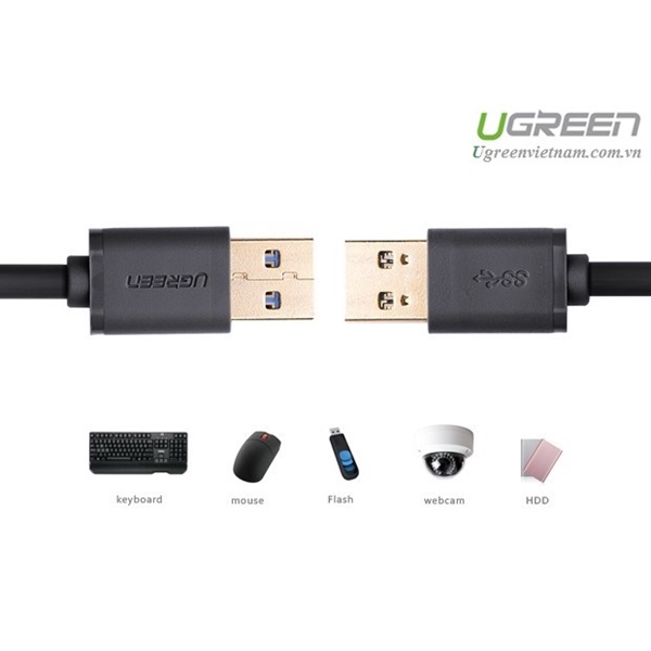 Cáp USB 3.0 Ugreen 10370 Male to Male dùng kết nối từ máy tính đến các thiết bị ngoại vi loại 3.0 để chuyển file một cách nhanh chóng.
