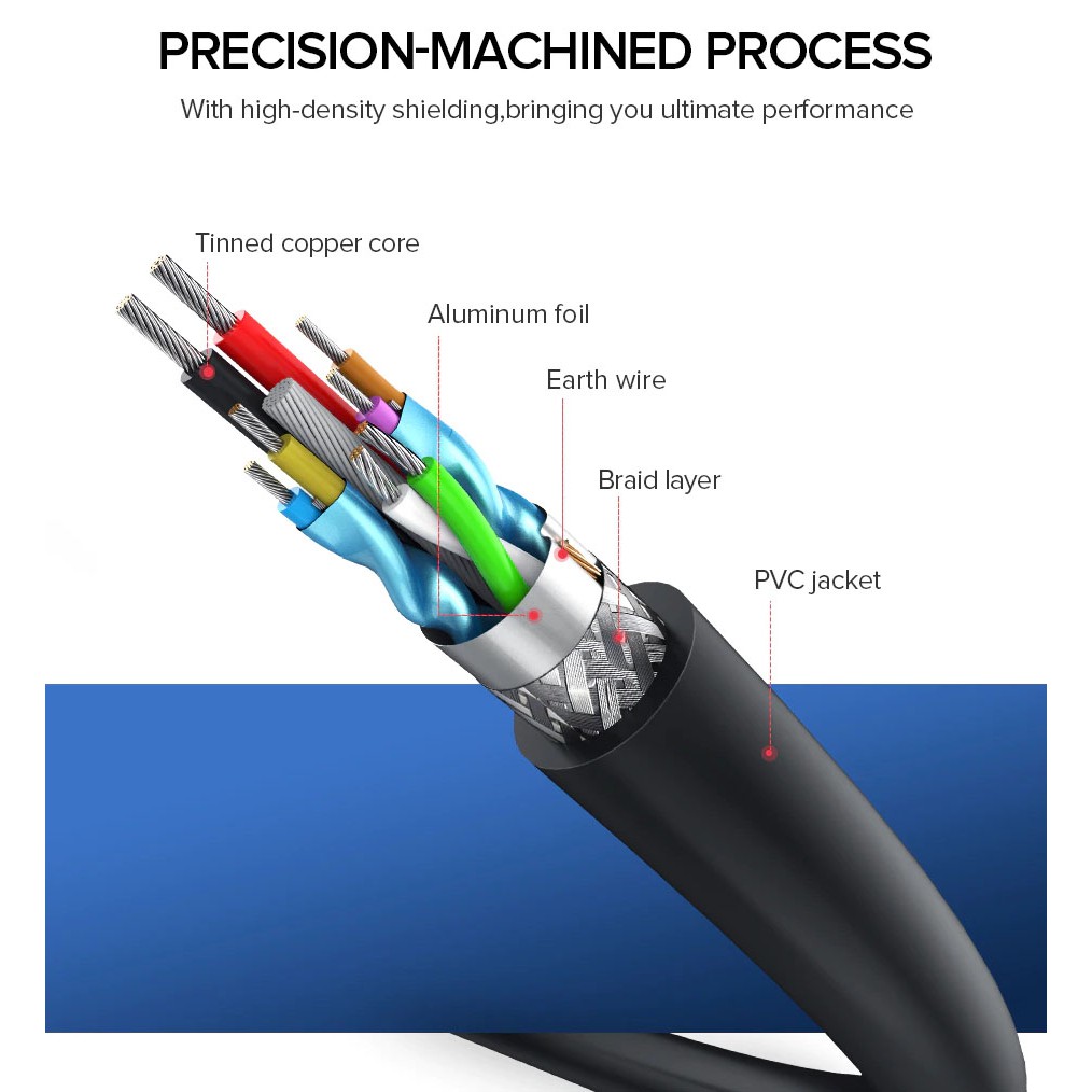 - Lõi cáp được làm từ đồng nguyên chất giúp tăng tối đa tốc độ truyền tín hiệu không suy hao; sợi cáp được bọc lưới bạc giúp chống nhiễu hiệu quả.
